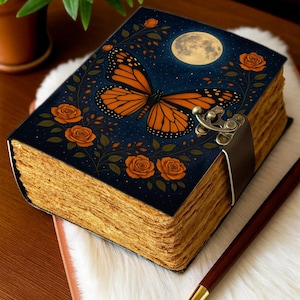 🌙 Luna Moth Leather Journal with Lock – Mystical Grimoire & Witchy Notebook
