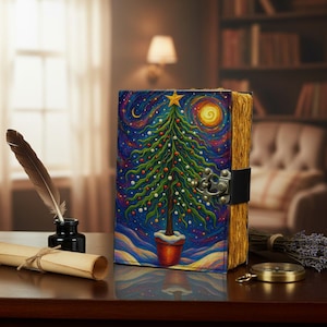 Handcrafted with care, this witchcraft notebook is bound in durable leather with a secure clasp, making it a timeless keepsake for your spells, rituals, tarot notes, and personal reflections. The golden vintage-style pages add a mystical touch, while the celestial artwork inspires creativity and spiritual connection.