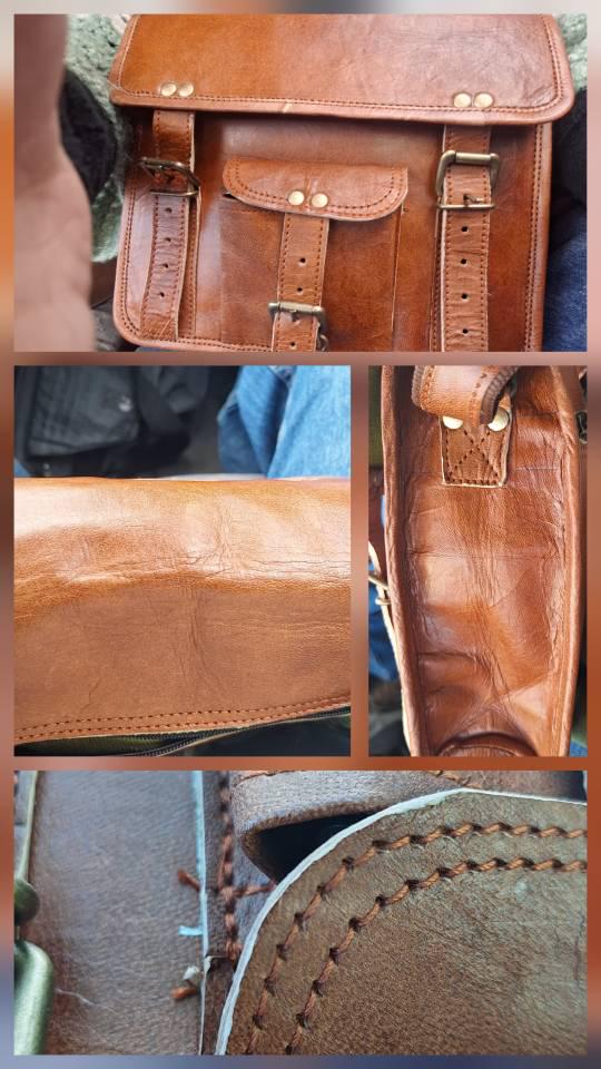 Not close to the pictured item. In the fine details of the piece cuts, the pieces of “leather?” Aren’t sealed like I expected or depicted. Markings of silver pen left on bag from when the bag was made. Inside was stiff and very tight. I can’t fit much of anything in the zippered pockets, the zipper being tough and then no room. The positive to the inner design is the padding for a tablet like an iPad no larger than 10” Would’ve liked to see an option for a different handle. The one provided is appearing flimsy without the added seal of wax like substance on edges that one sees on edging. Stickler for the fact that the added personalization wasn’t centered but thankful the names spelled correctly. In summary, I expected the picture and got the wish. I will use as my teen says it’s like “Jone’s bag” from movies.