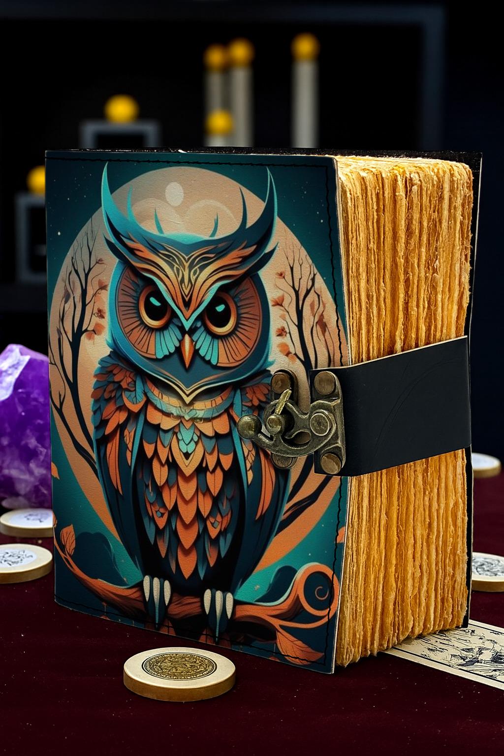 Handmade Leather Journal, Owl Book of Shadows, Wiccan Grimoire, Witchcraft Spellbook, Pagan Gift, Occult Notebook, Vintage Writing Journal, Gothic Witchy Stationery