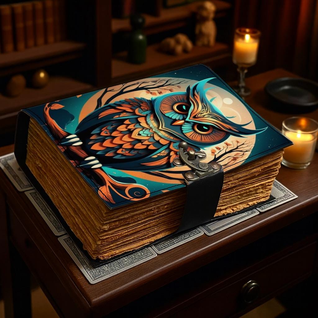 🦉 Handmade Leather Owl Journal – A Spellbook of Wisdom & Magic