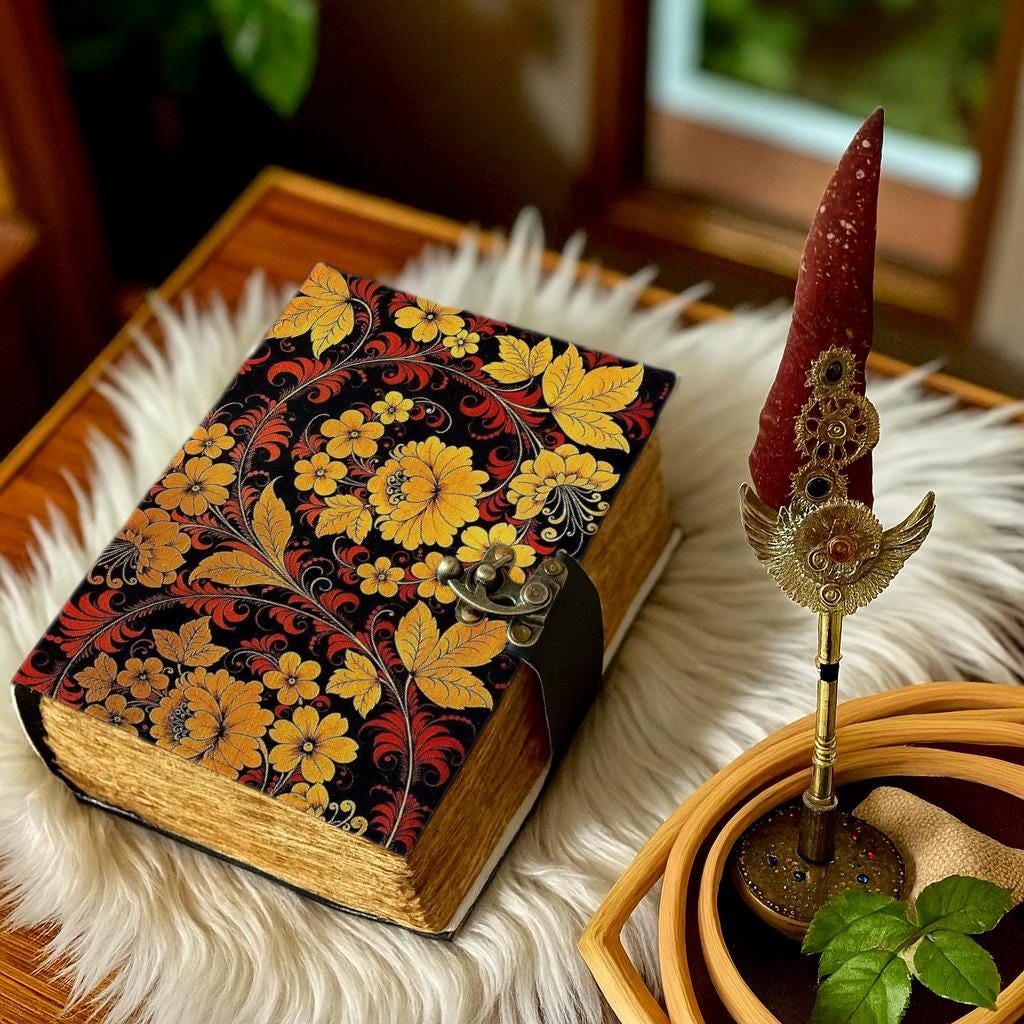 The floral design represents life, renewal, and creativity, making it a meaningful gift or personal treasure. Whether you use it for witchcraft rituals, daily journaling, or artistic sketches – this piece will inspire you every day.