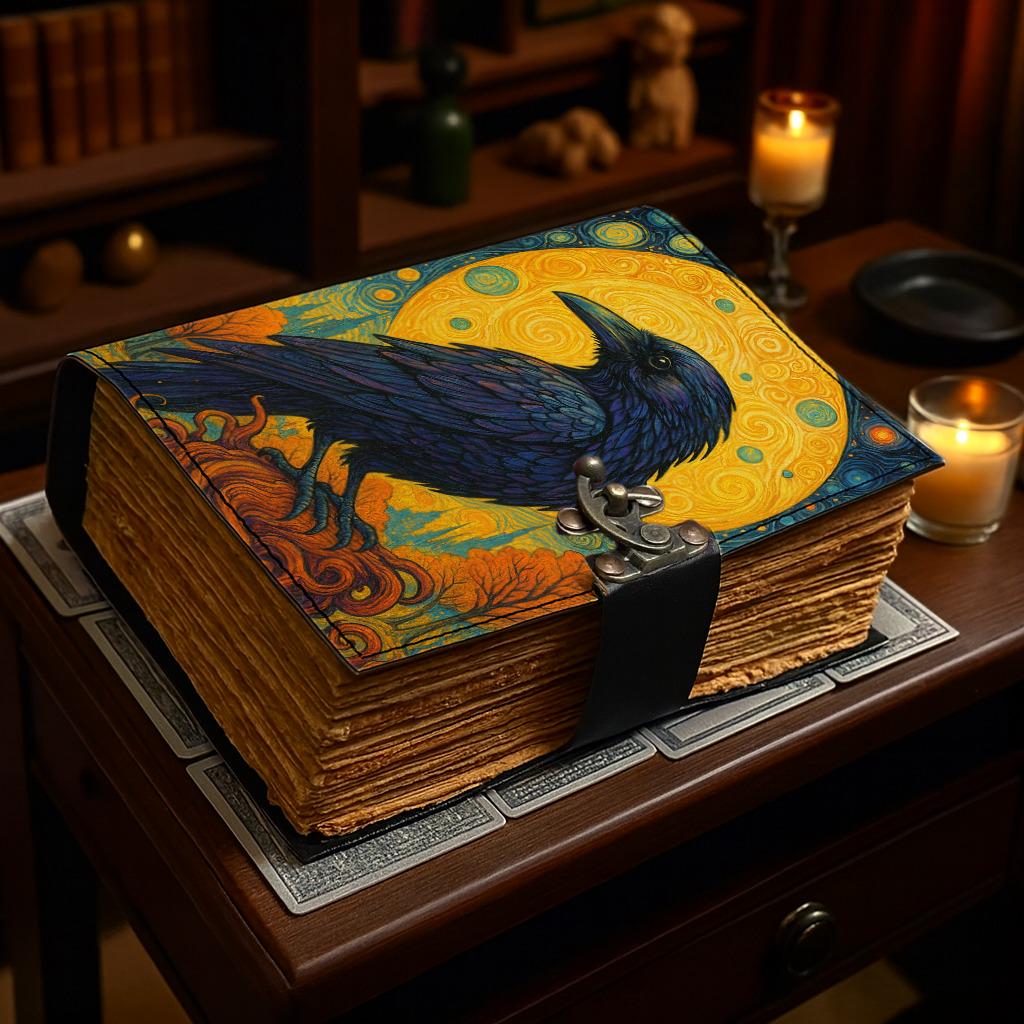 🪶 Handmade Leather Raven Journal with Lock – Gothic Grimoire, Spell Book & Vintage Writing Diary