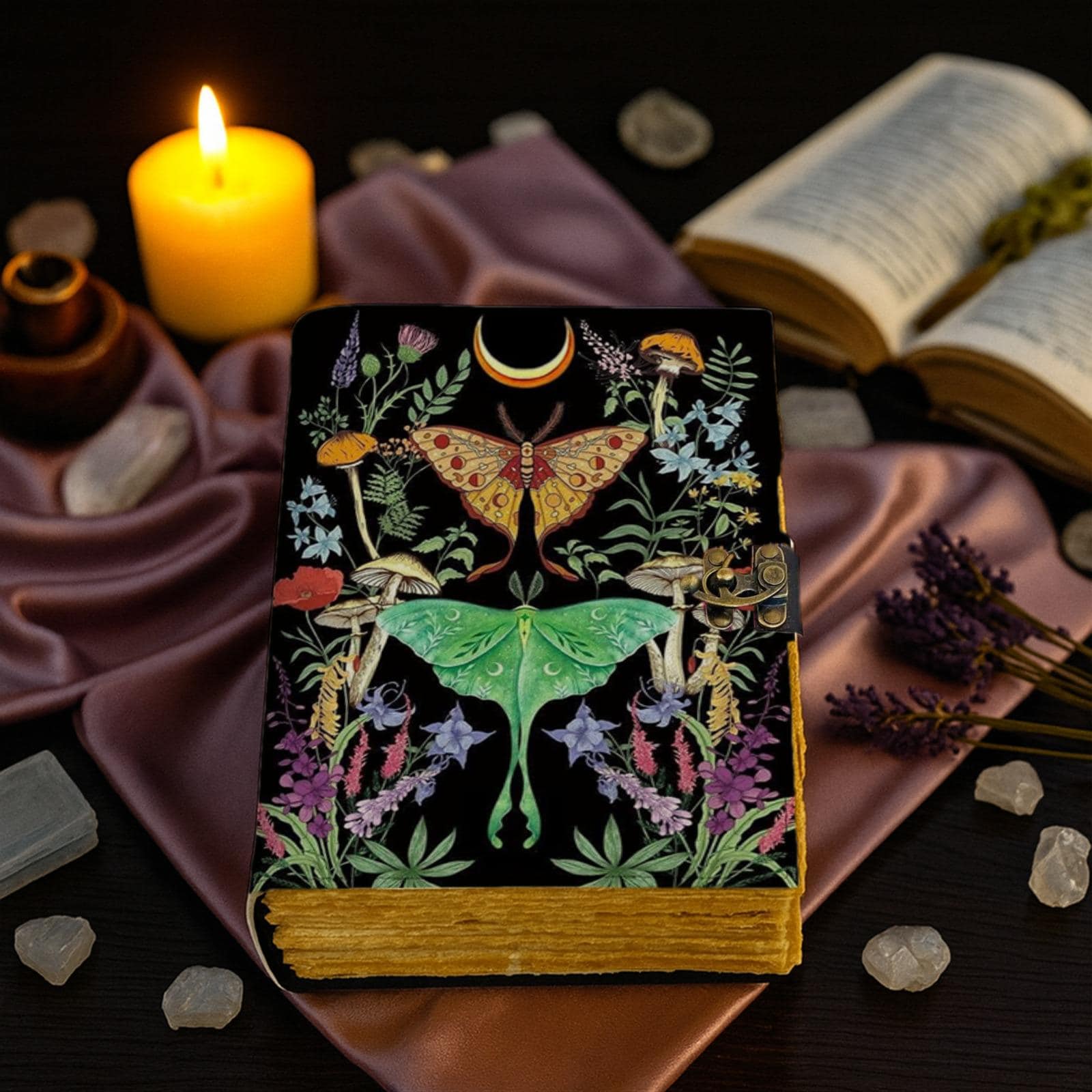 Adorned with an enchanting luna moth and butterfly design, surrounded by flowers, mushrooms, and a crescent moon, this journal symbolizes transformation, intuition, and balance โ a perfect companion for witches, artists, and dreamers.