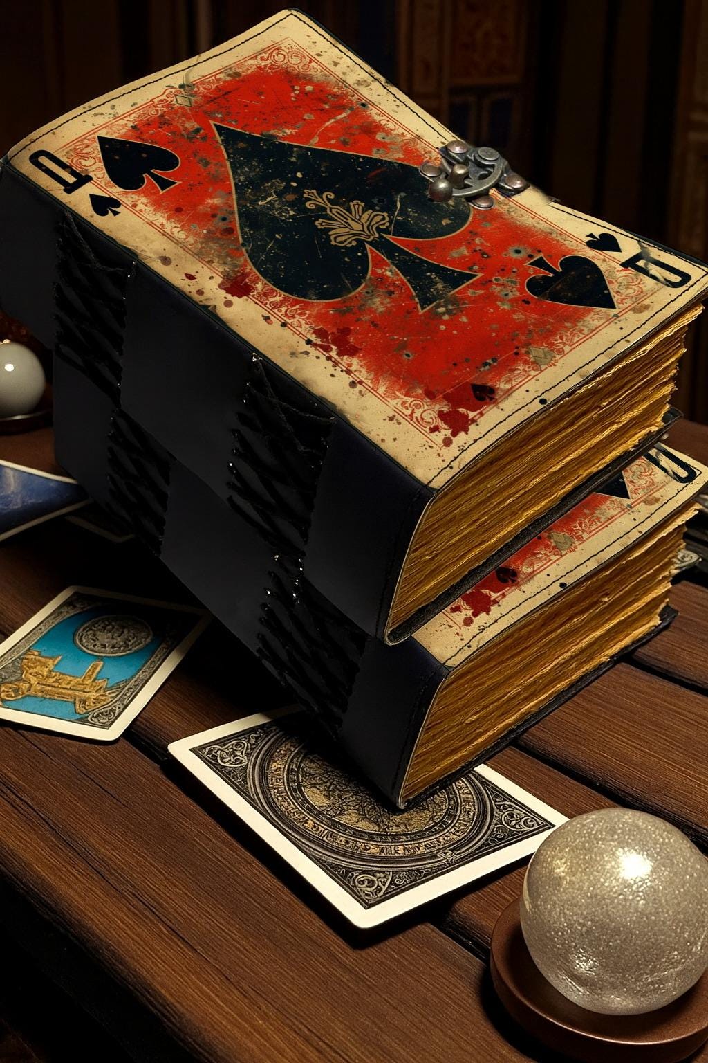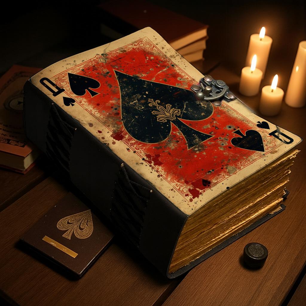 🂡 Ace of Spades embossed leather cover with artistic red-black tones