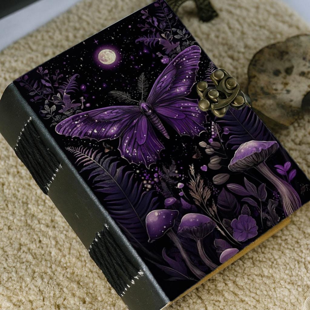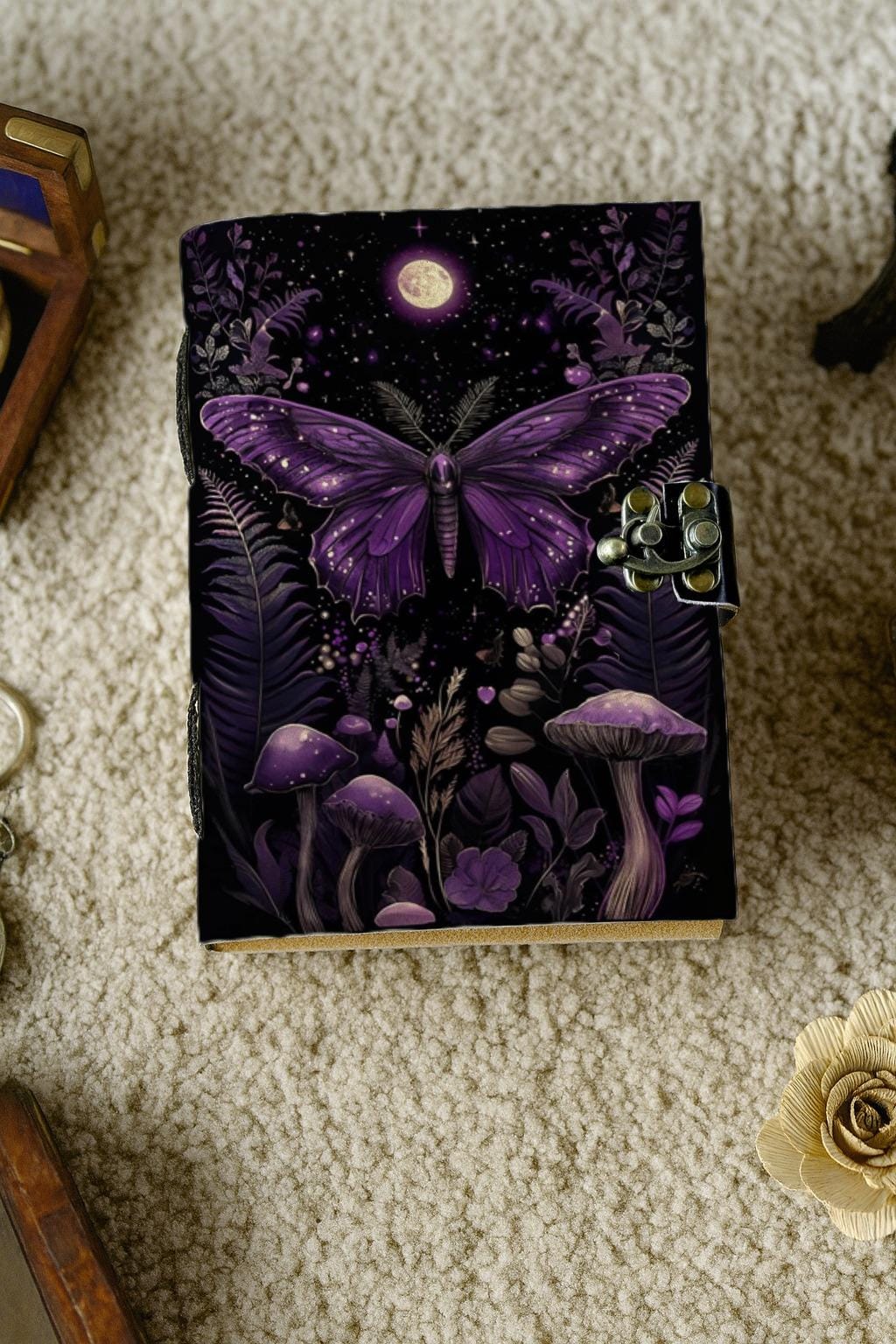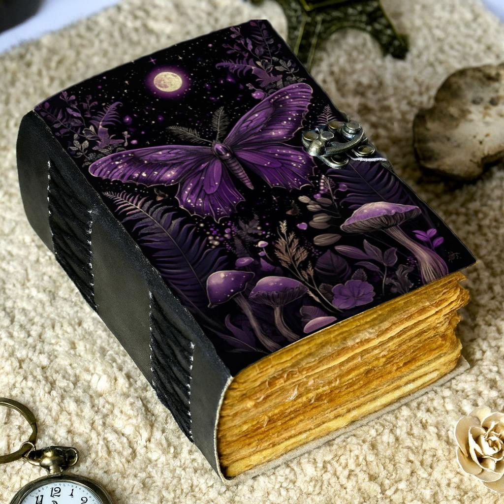 Let your imagination take flight under the moonlight with this Handmade Purple Butterfly Leather Journal — a mystical blend of nature, fantasy, and magic.