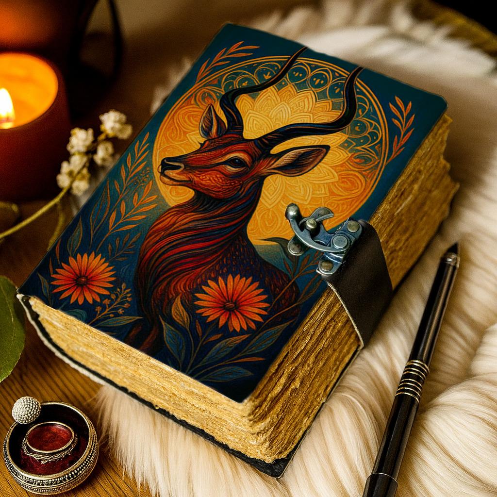 Every page feels like a walk through the woods. The deer symbolizes grace, intuition, and rebirth, inspiring you to stay grounded while exploring your creative side. Whether used as a personal diary, spellbook, or art journal, this handcrafted piece will become a cherished part of your daily rituals.