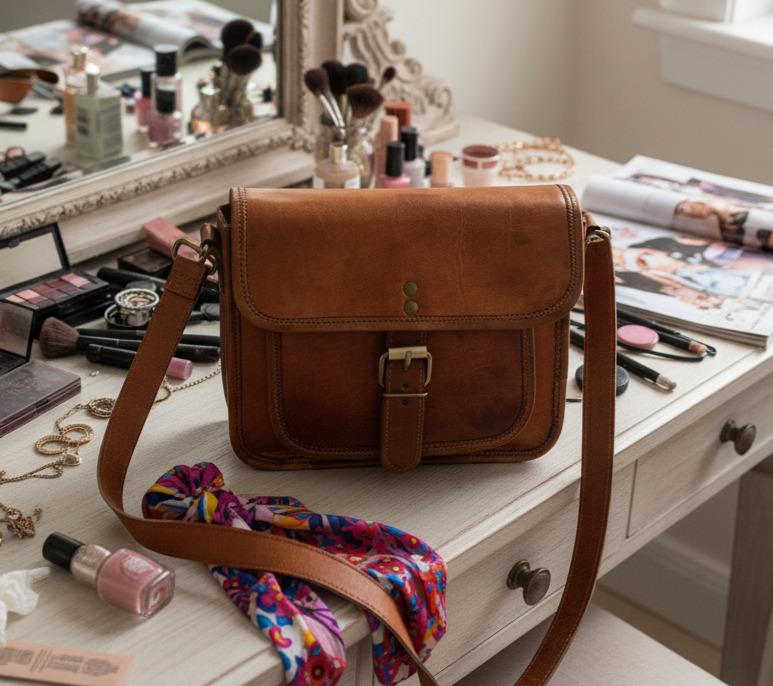 👜 Handmade Leather Crossbody Bag – Vintage Brown Messenger Satchel