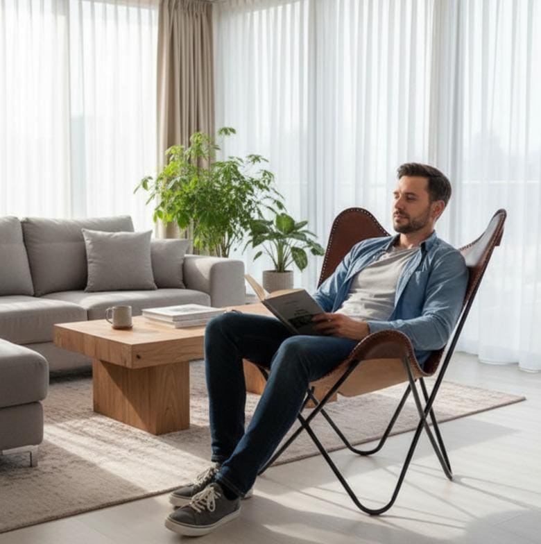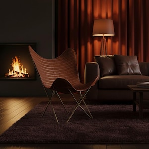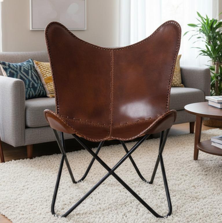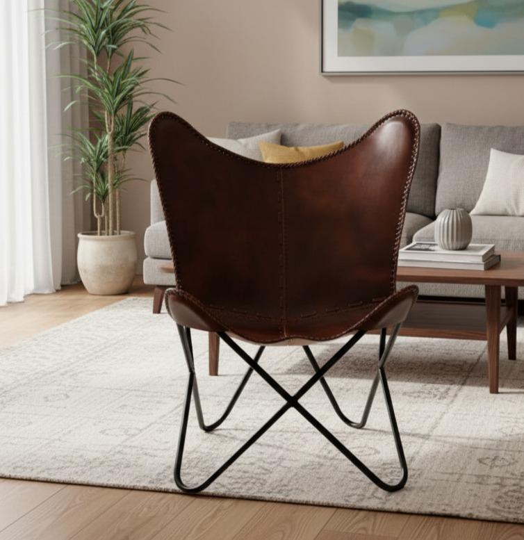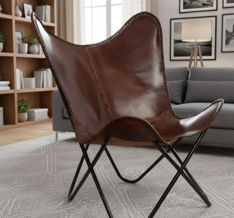 Bring timeless craftsmanship and rustic elegance to your home with this handcrafted genuine leather butterfly chair. Made from premium full-grain leather and a sturdy powder-coated iron frame, it offers comfort, durability, and a striking vintage look — perfect for any modern, bohemian, or industrial space.