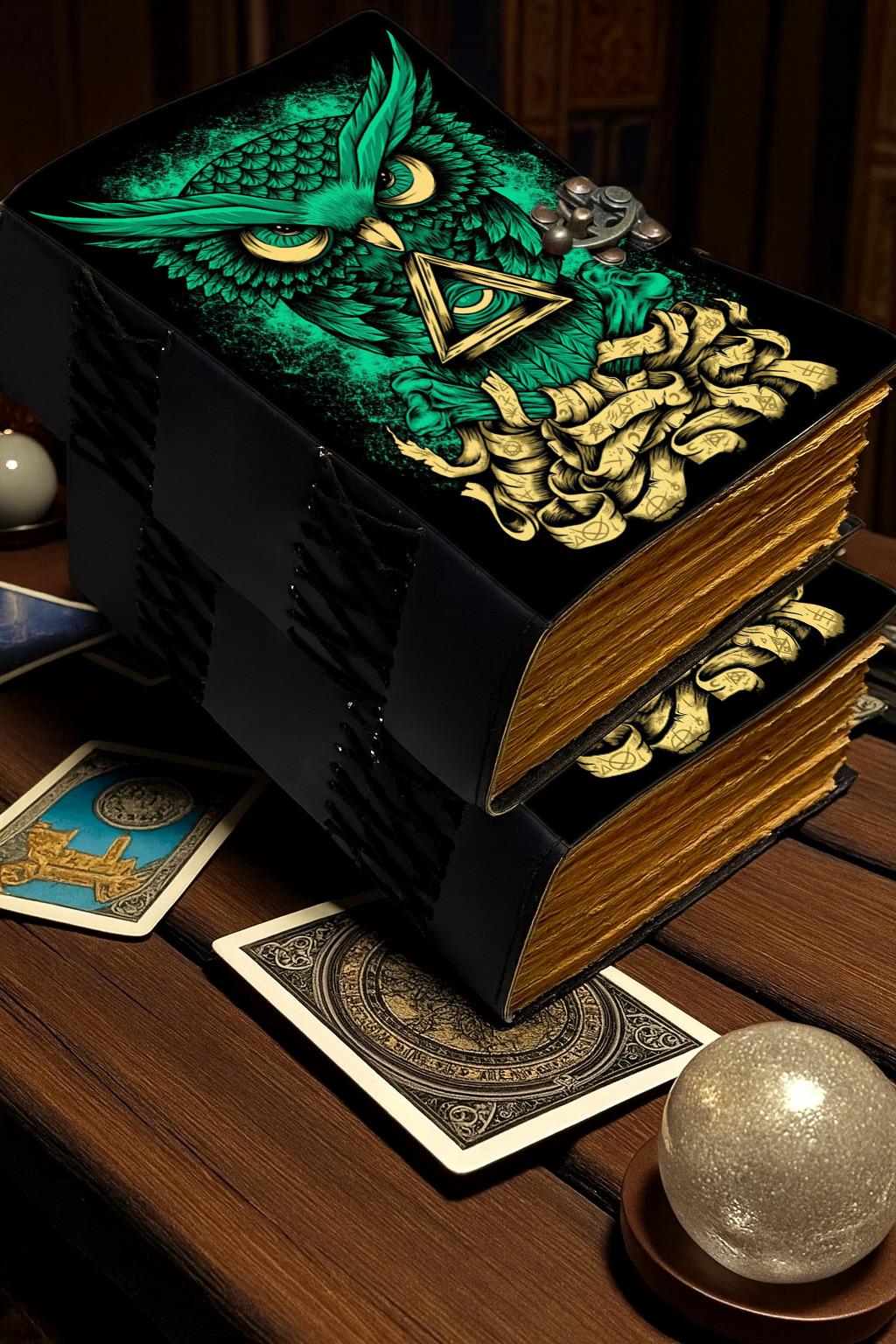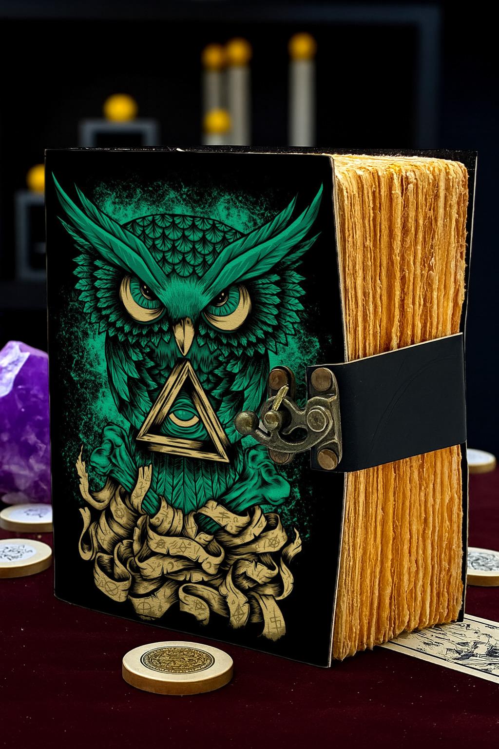 Intricately embossed Owl and All-Seeing Eye design with magical details