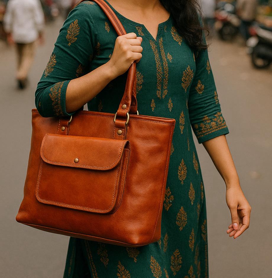 👜 Handmade Genuine Leather Tote Bag for Women – Classic Everyday Shoulder Purse