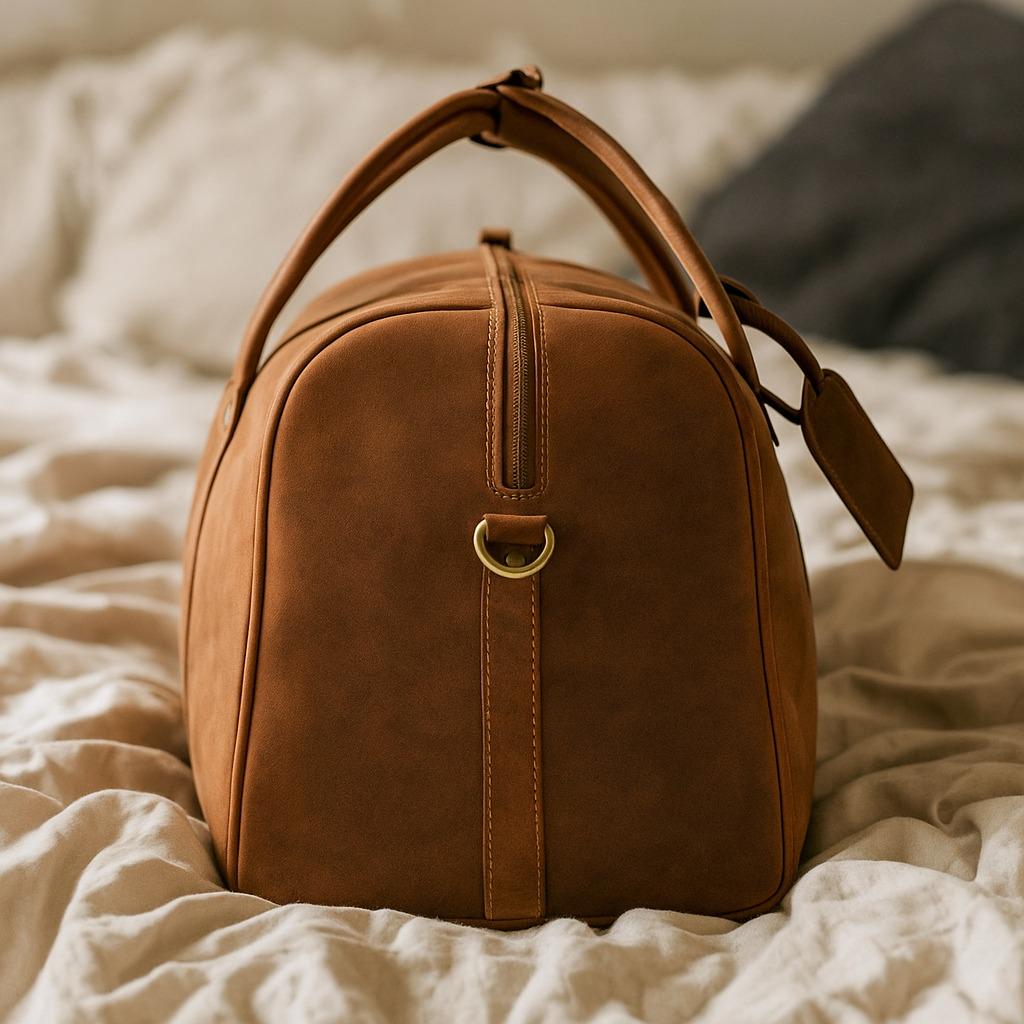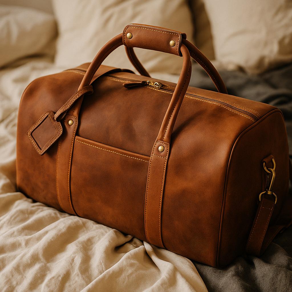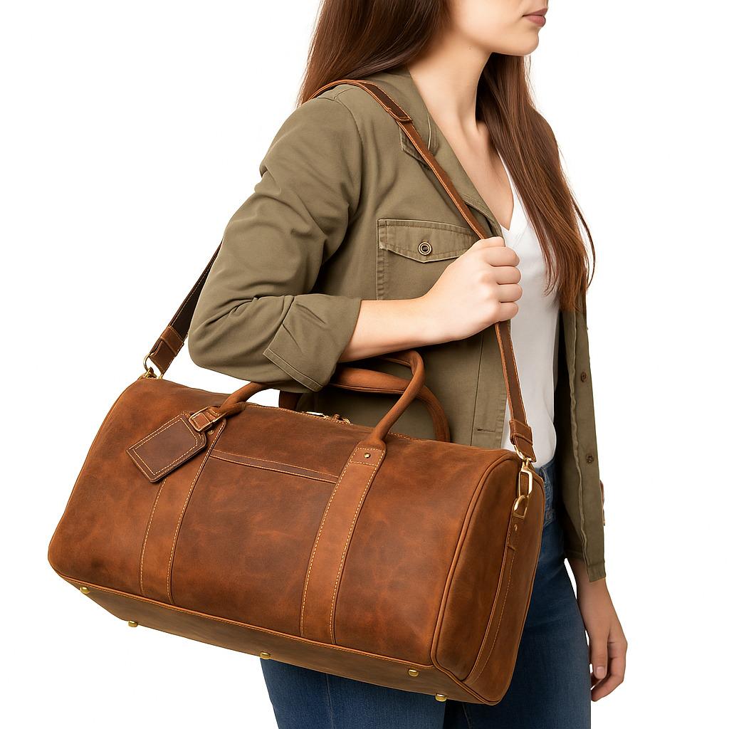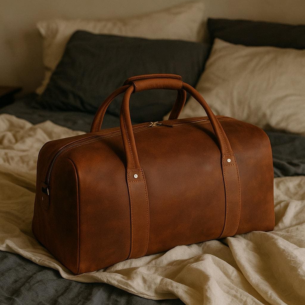 Travel with confidence and timeless style. This handcrafted genuine leather duffel bag is made from soft, full-grain leather that feels smooth to the touch yet strong enough to last a lifetime. Its warm vintage tan finish develops a rich patina over time, making every bag truly one of a kind.