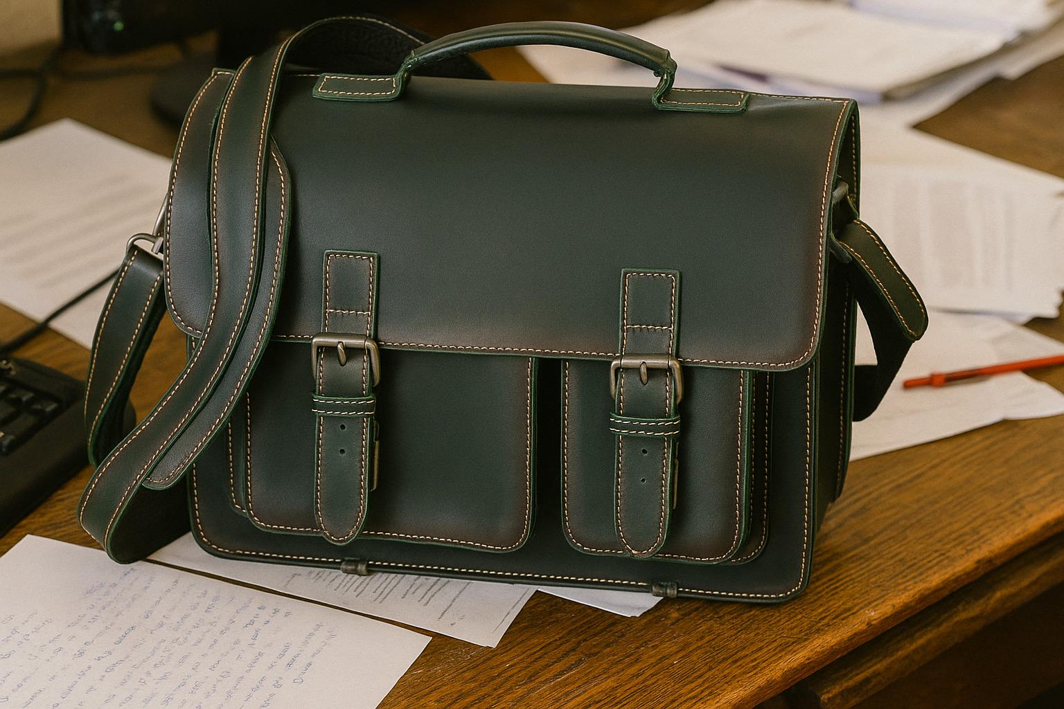 Handmade Green Leather Briefcase for Men â Vintage Messenger Laptop Bag by ANOORCRAFT