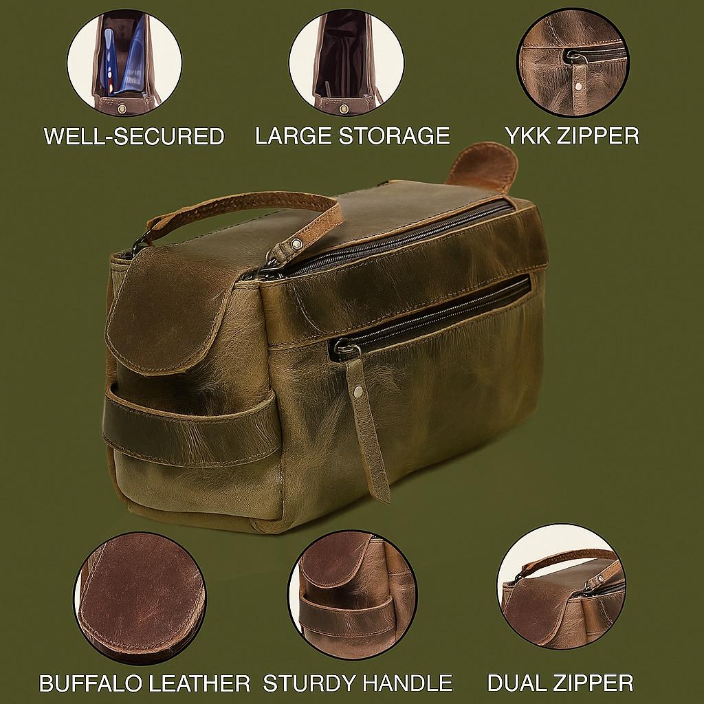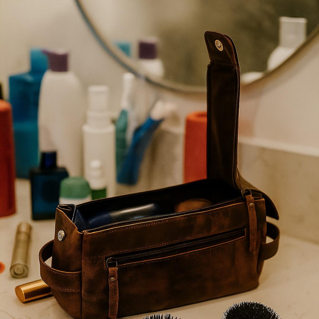 Travel in style with timeless craftsmanship. This handmade vintage leather toiletry bag is designed for the modern traveler who values quality, organization, and classic aesthetics. Made from premium full-grain leather, this dopp kit ages beautifully, developing a rich patina that tells your unique story over time.